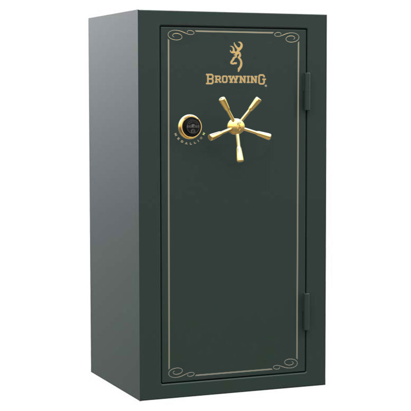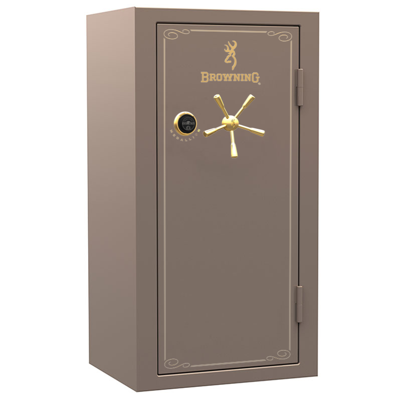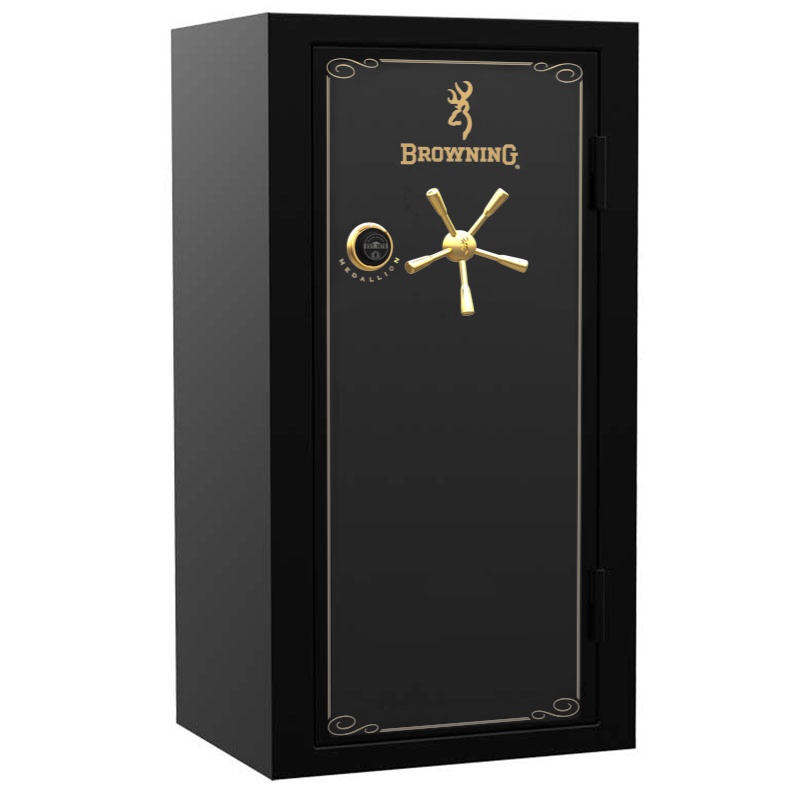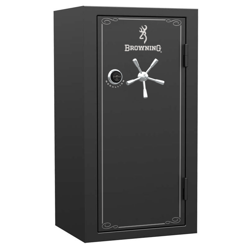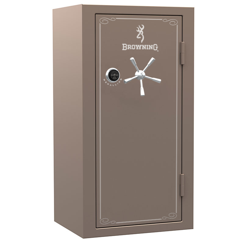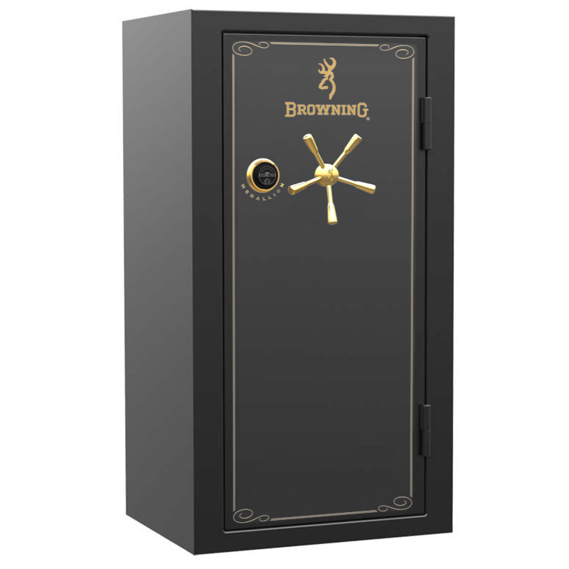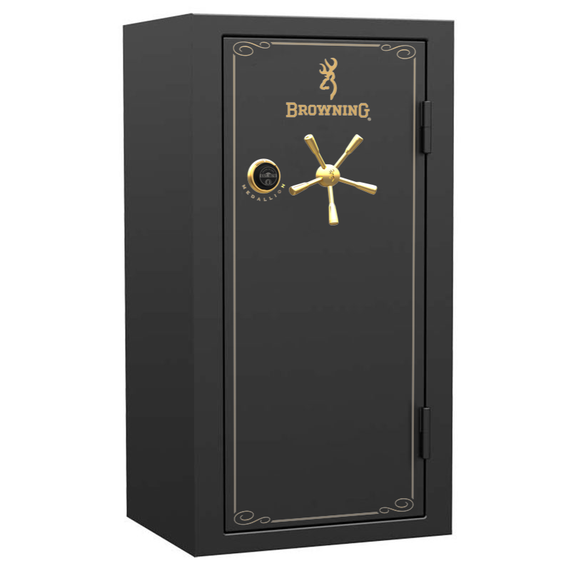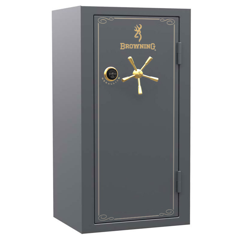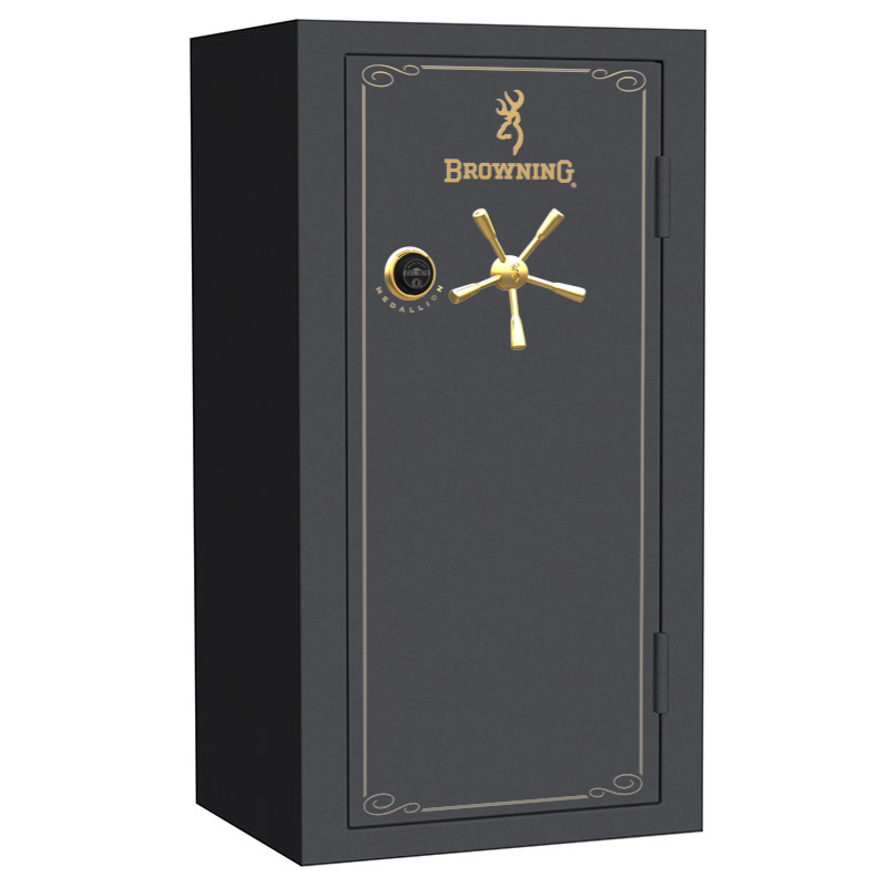 Among the Browning ProSteel Custom Collection, Medallion safes offer the best mix of security, fire protection and interior convenience — features that have made them top sellers for more than a decade. The M33 is the smallest safe in the Medallion line, classified as a Standard size safe. The Axis interior and DPX door panel secures up to 33 long guns with extra space for jewelry, handguns, documents and other important items.
