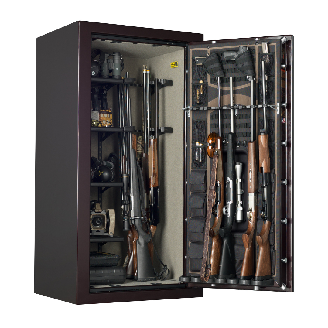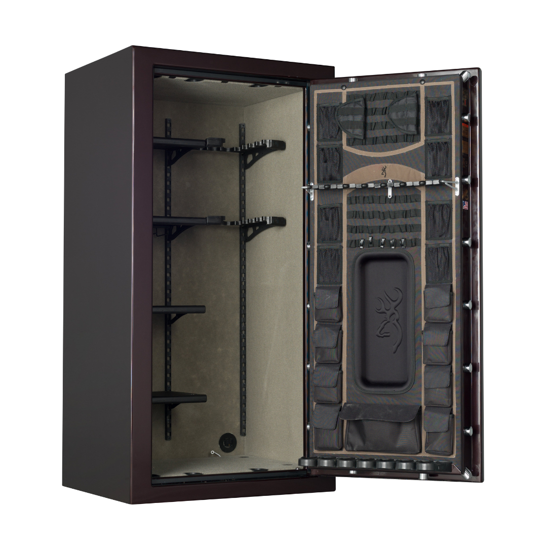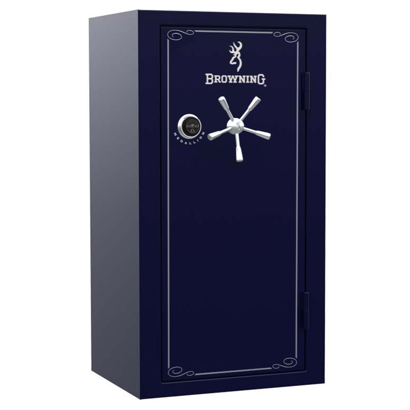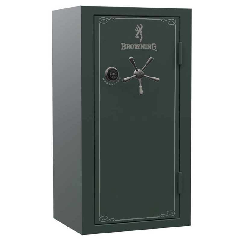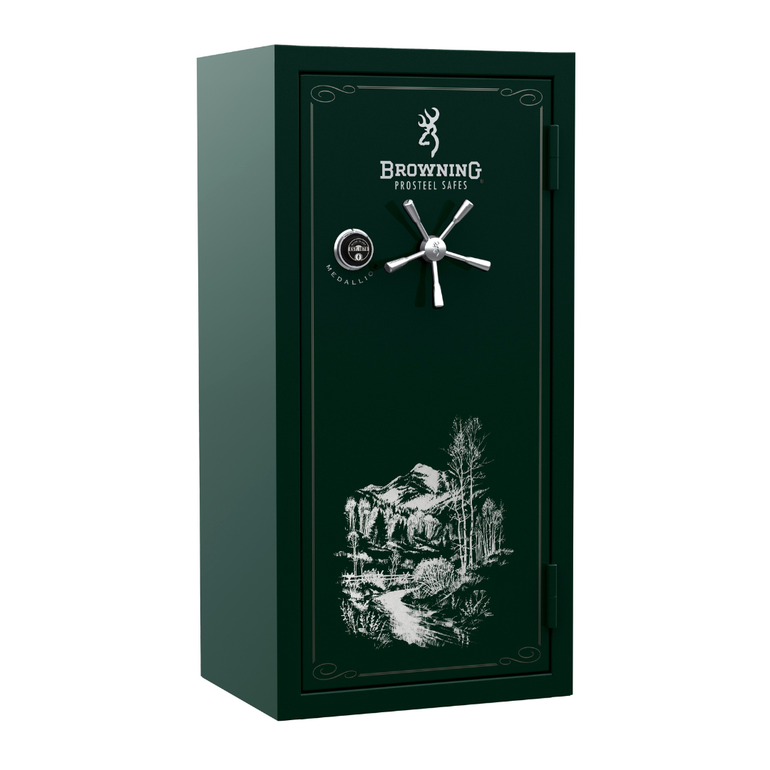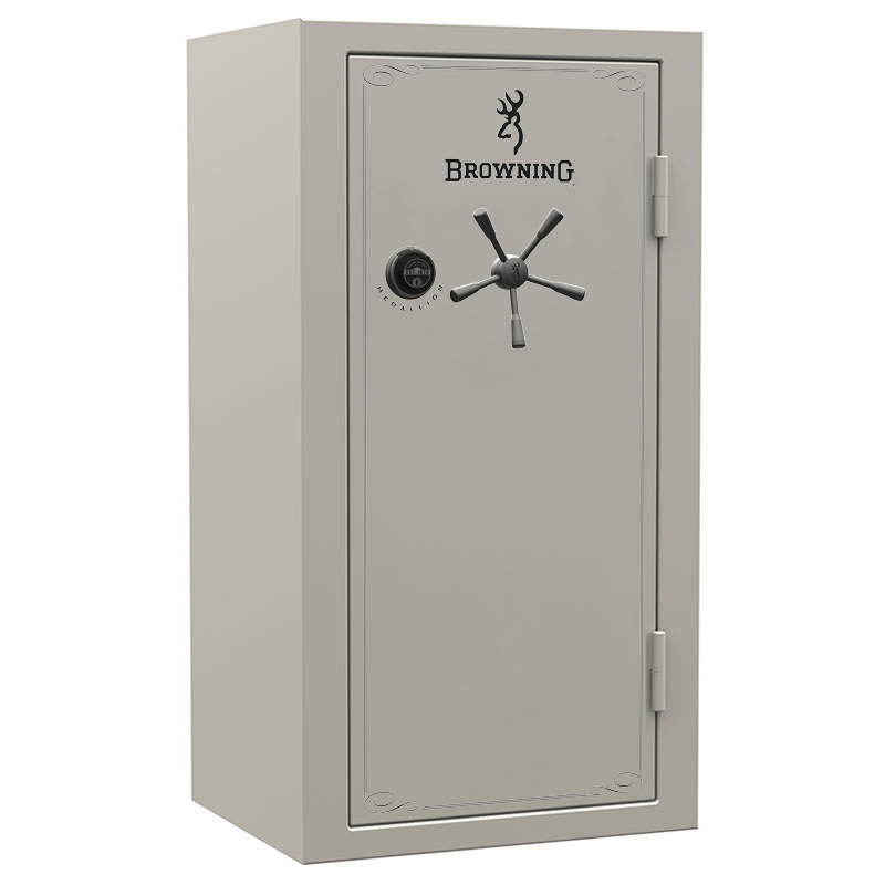 Among the Browning ProSteel Custom Collection, Medallion safes offer the best mix of security, fire protection and interior convenience — features that have made them top sellers for more than a decade. The M33 is the smallest safe in the Medallion line, classified as a Standard size safe. The Axis interior and DPX door panel secures up to 33 long guns with extra space for jewelry, handguns, documents and other important items.