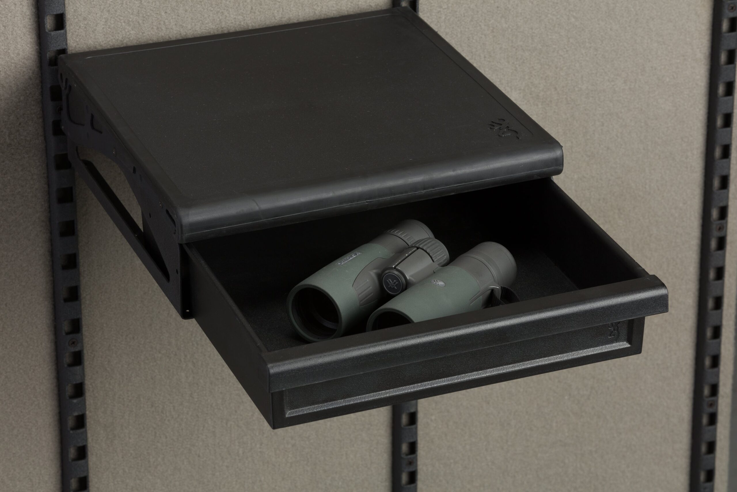 Axis Drawer is a great accessory purchase or something you will want to add to your new safe order. If you have small, miscellaneous items you don’t want to lose, this neat little drawer can solve your problem. Quick to install and move around in the safe and always there keeping smaller valuables from being bumped off a shelf and getting damaged or lost.